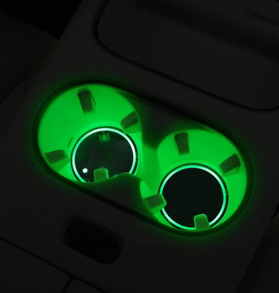 The LED cup holder lights are USB rechargeable and feature multicolor options. This product provides ambient illumination to enhance the aesthetic of your vehicle's interior. The energy-efficient LED technology ensures longevity, while the USB rechargeability offers convenience and reduces waste associated with disposable batteries.